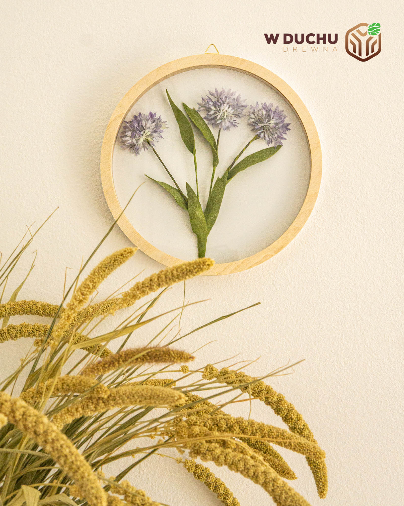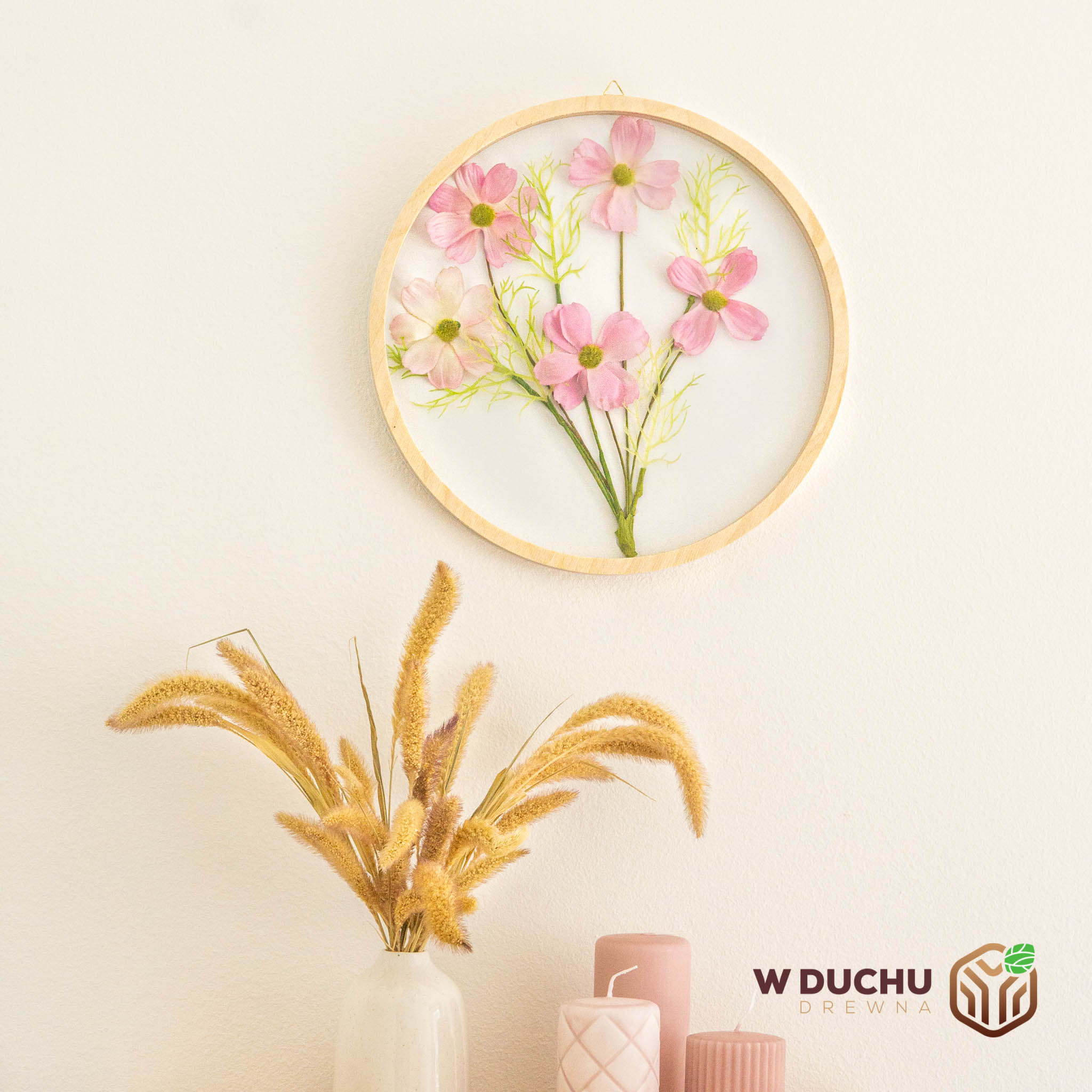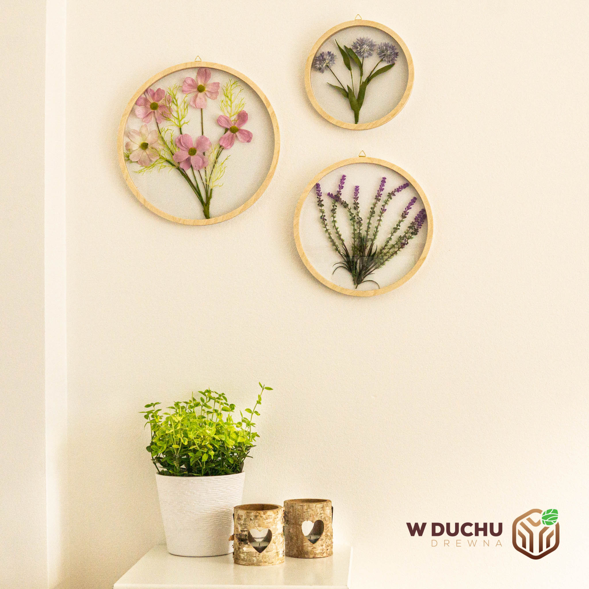 Prezentujemy nowoczesny drewniany ring z kompozycją kwiatową. Ring jest dostępny w trzech rozmiarach i posiada różne motywy kwiatowe, co pozwala dopasować go do przeróżnych stylów wnętrz.
