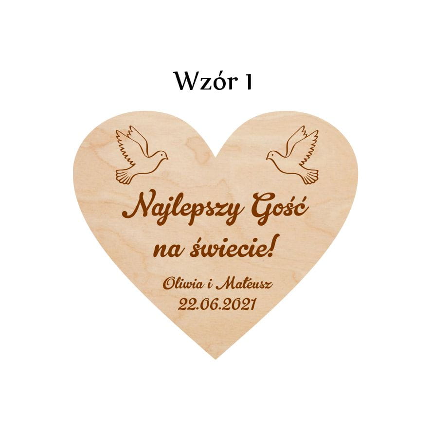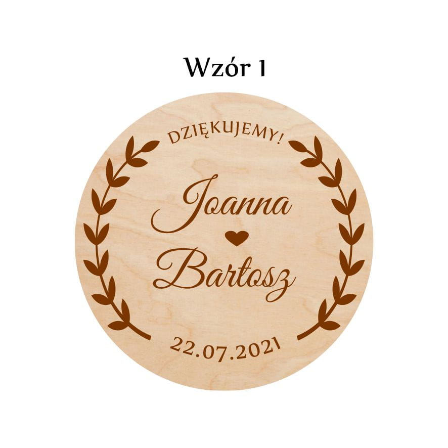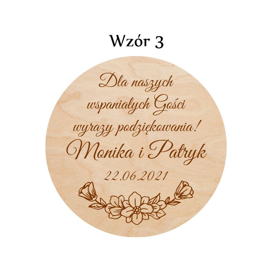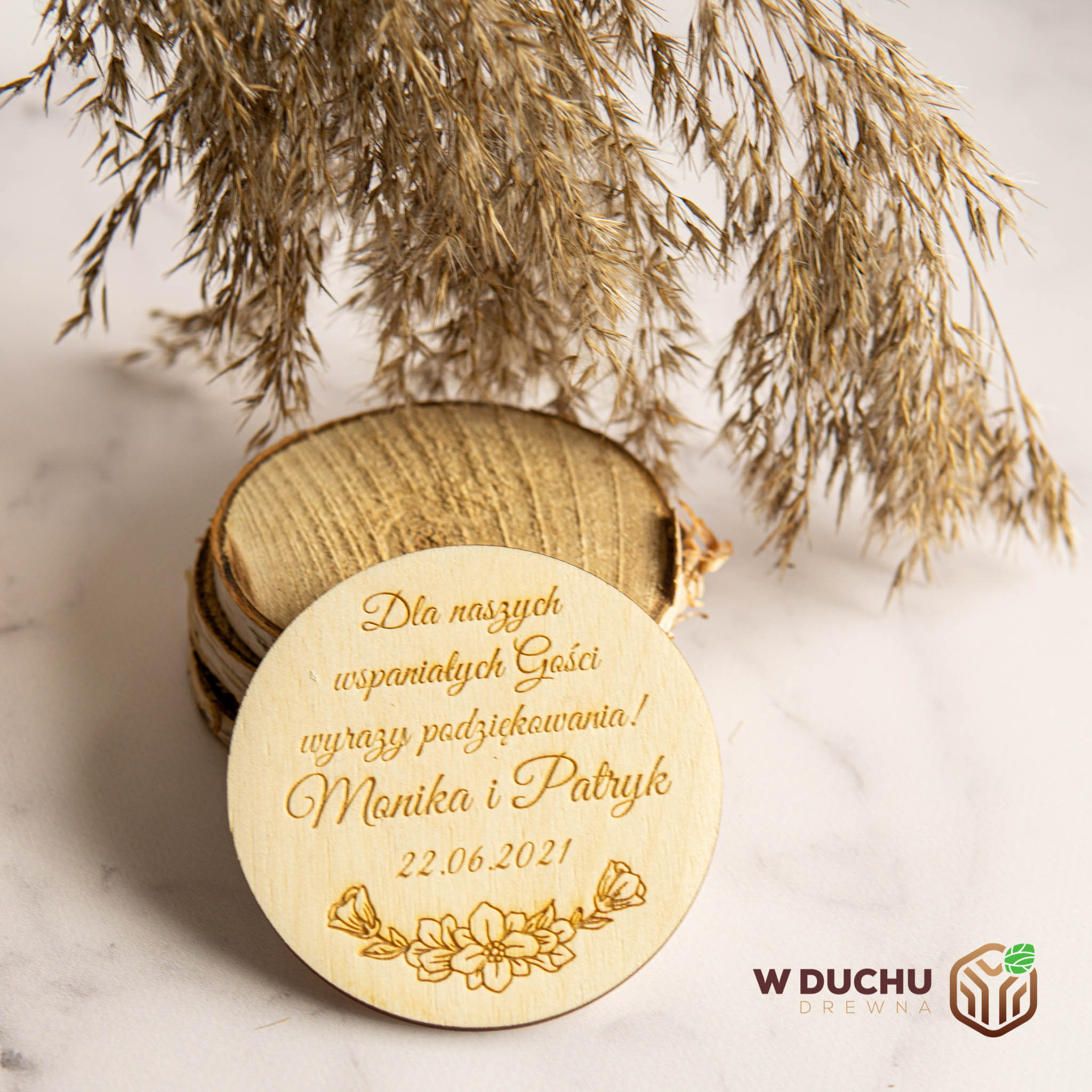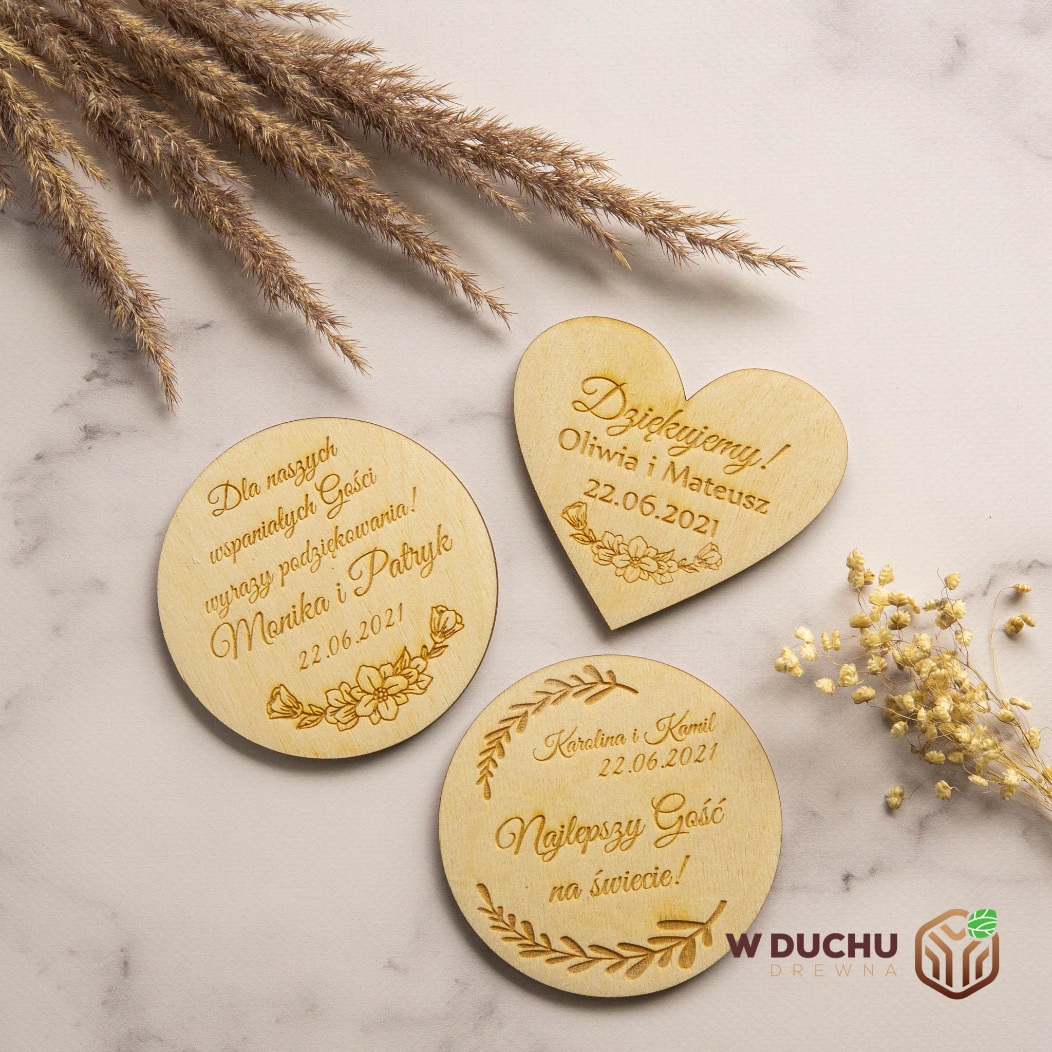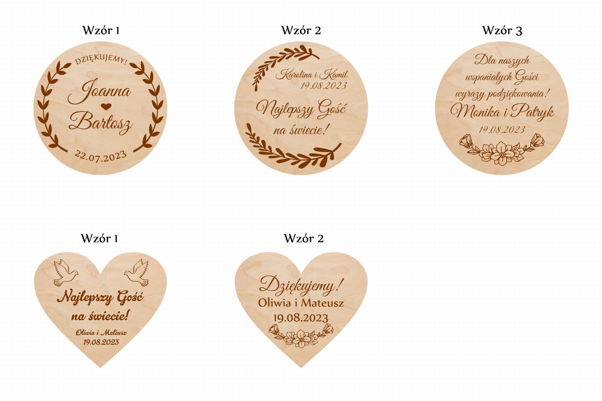 Magnes drewniany w formie podziękowań dla gości weselnych - różne wzory