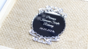 Materiał: pleksa srebrna