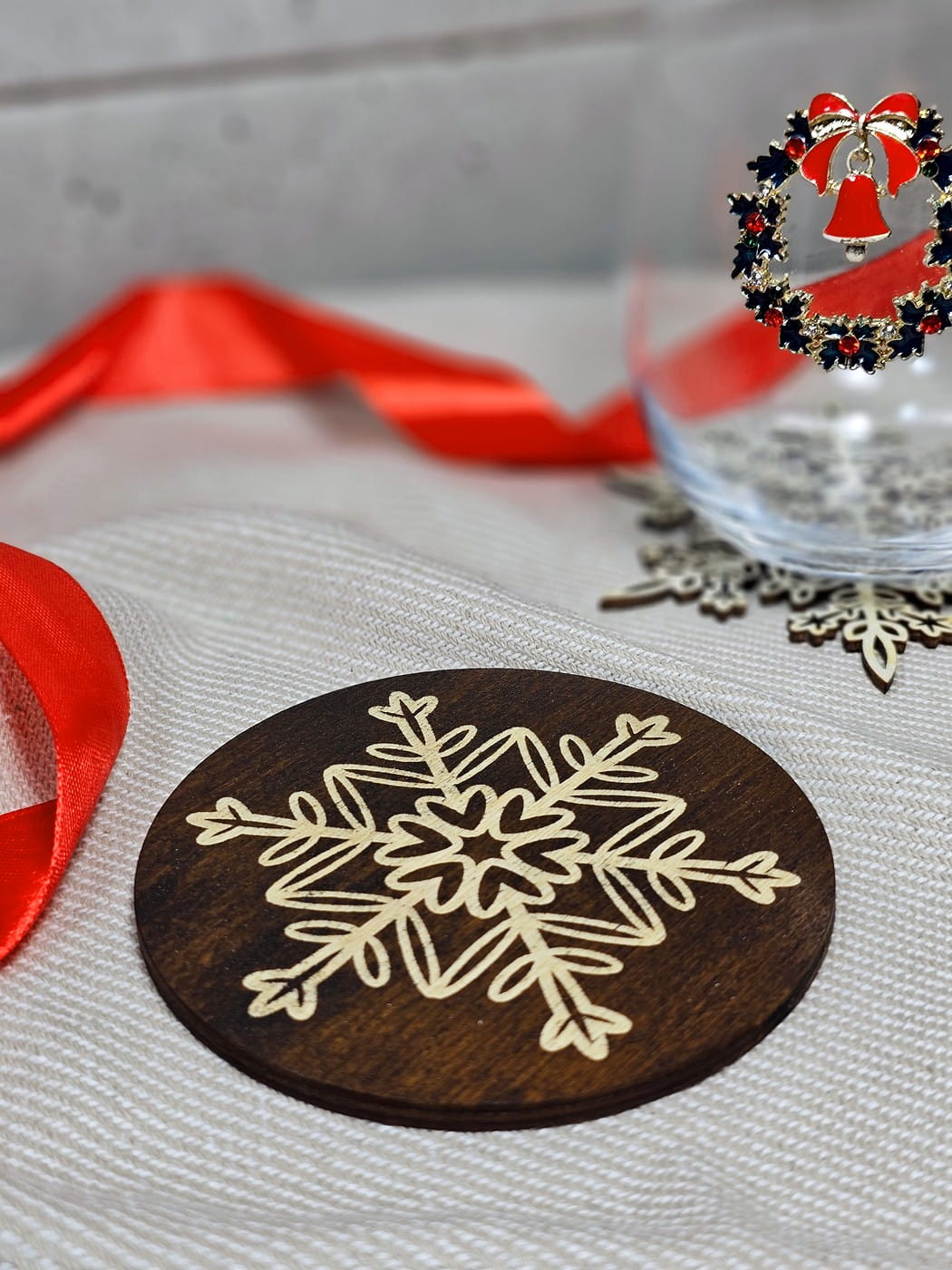 Drewniana podstawka pod herbatę płatek śniegu