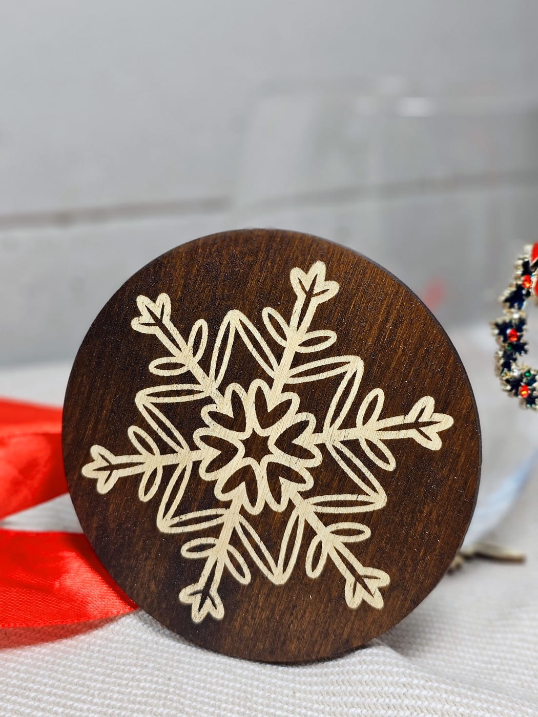 – Świąteczna podstawka pod kubek śnieżynka