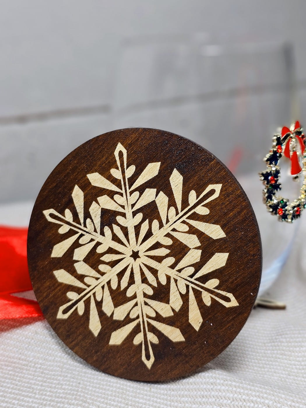 Podstawka okrągła pod herbatę kawę płatek śniegu grawer - wzór 5