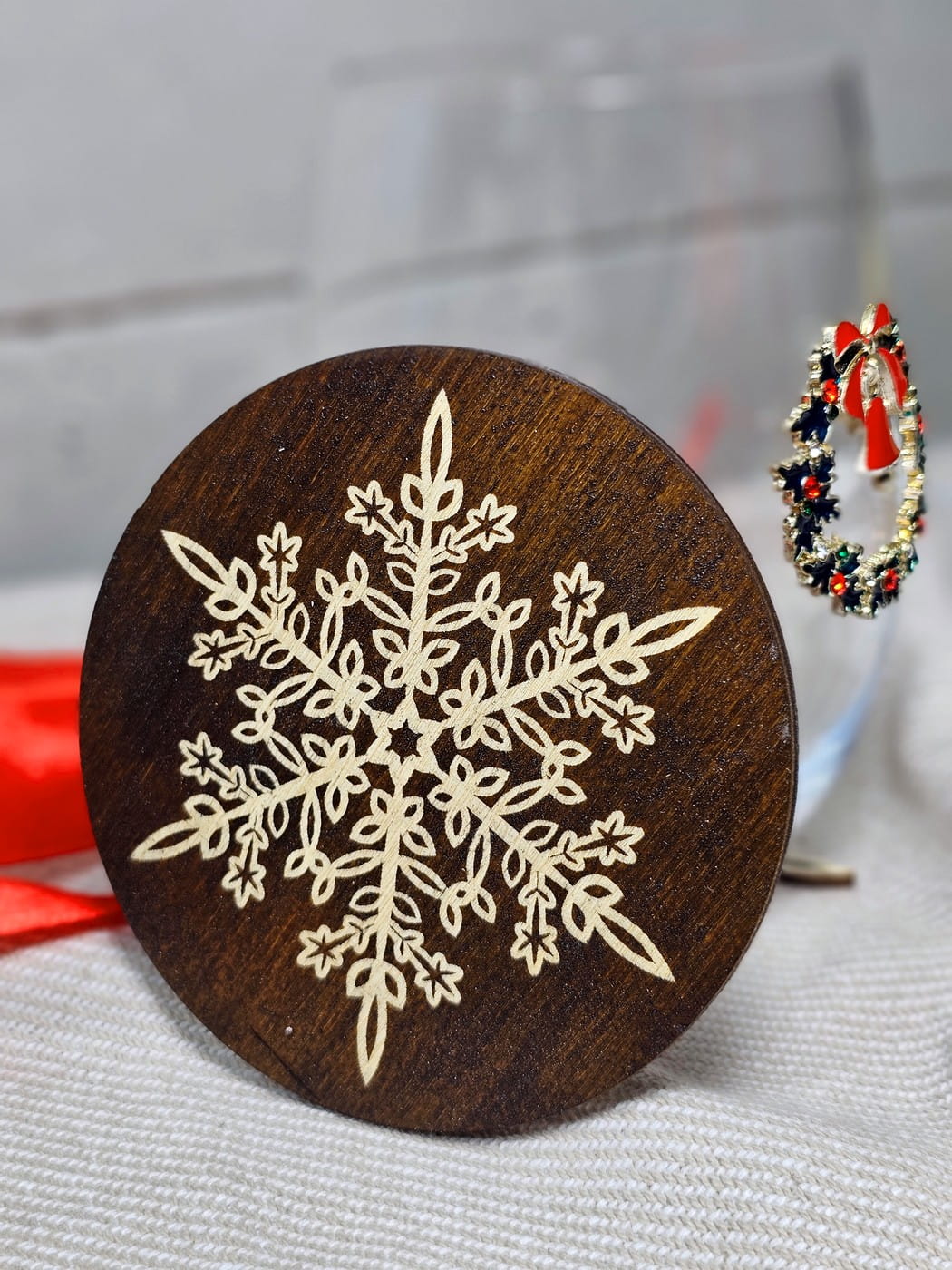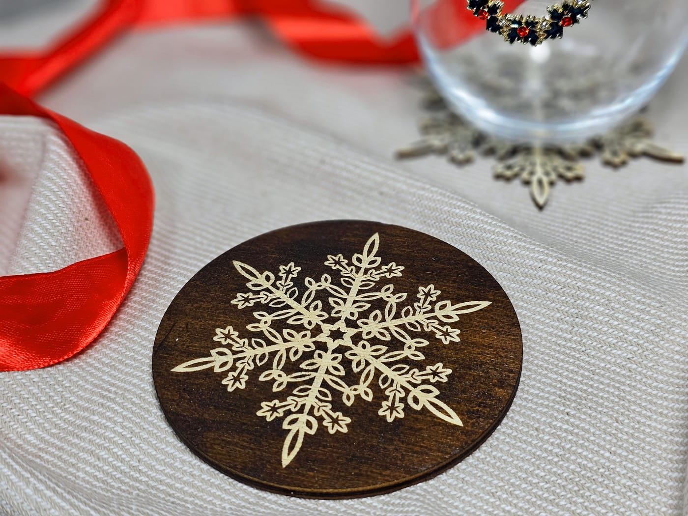 Drewniana podstawka pod herbatę płatek śniegu