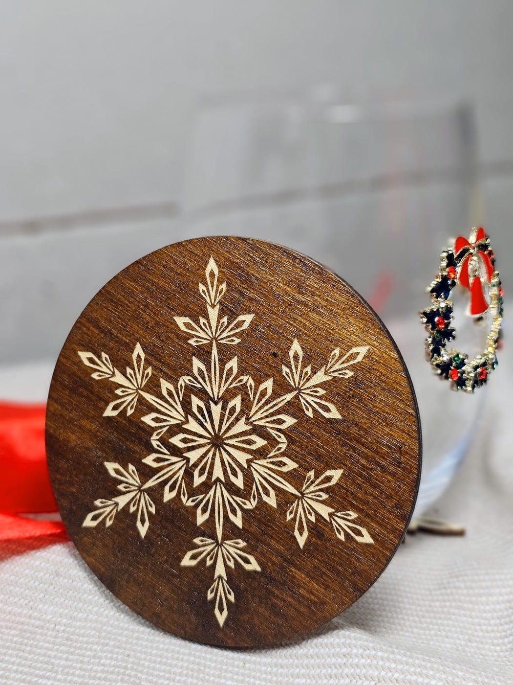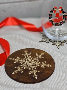 Podstawka okrągła pod herbatę kawę płatek śniegu grawer - wzór 8