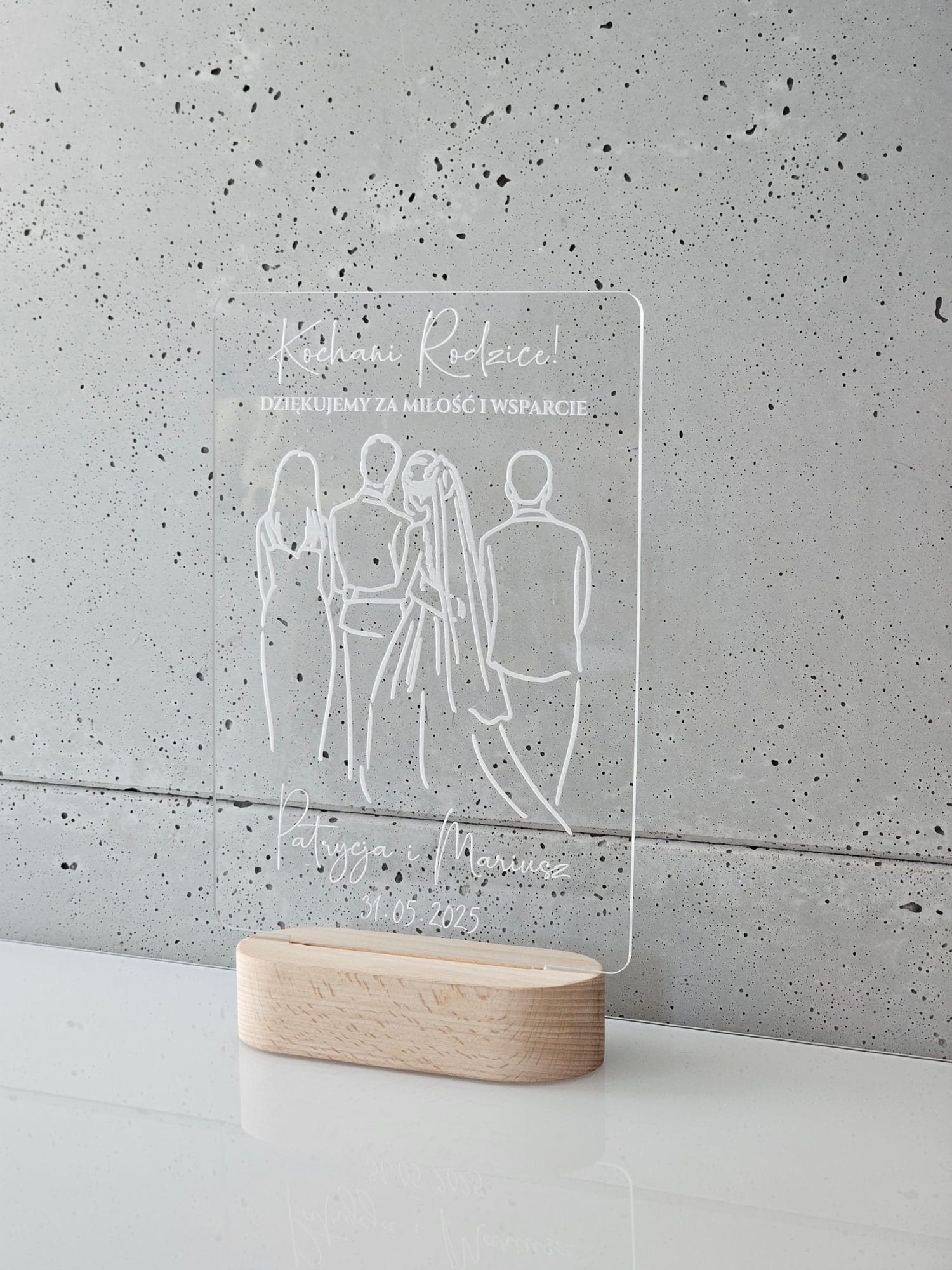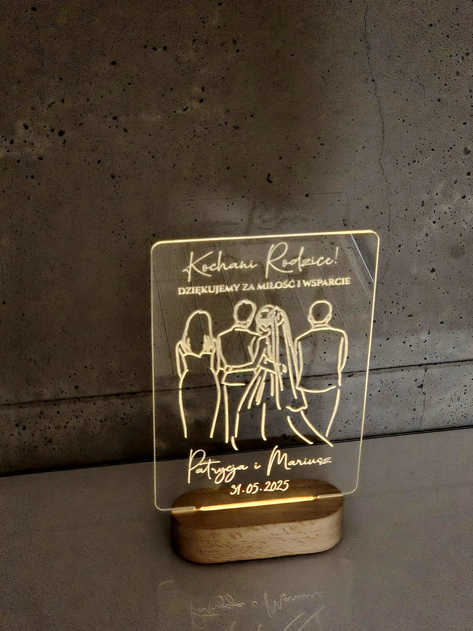 Wyjątkowa lampka LED z grawerem, idealna jako podziękowanie dla rodziców na ślub, rocznicę czy inne ważne okazje.