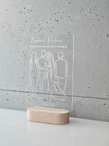 Elegancka bezbarwna pleksi w połączeniu z drewnianą podstawą tworzy stylowy i wzruszający upominek, który stanie się piękną pamiątką na lata.