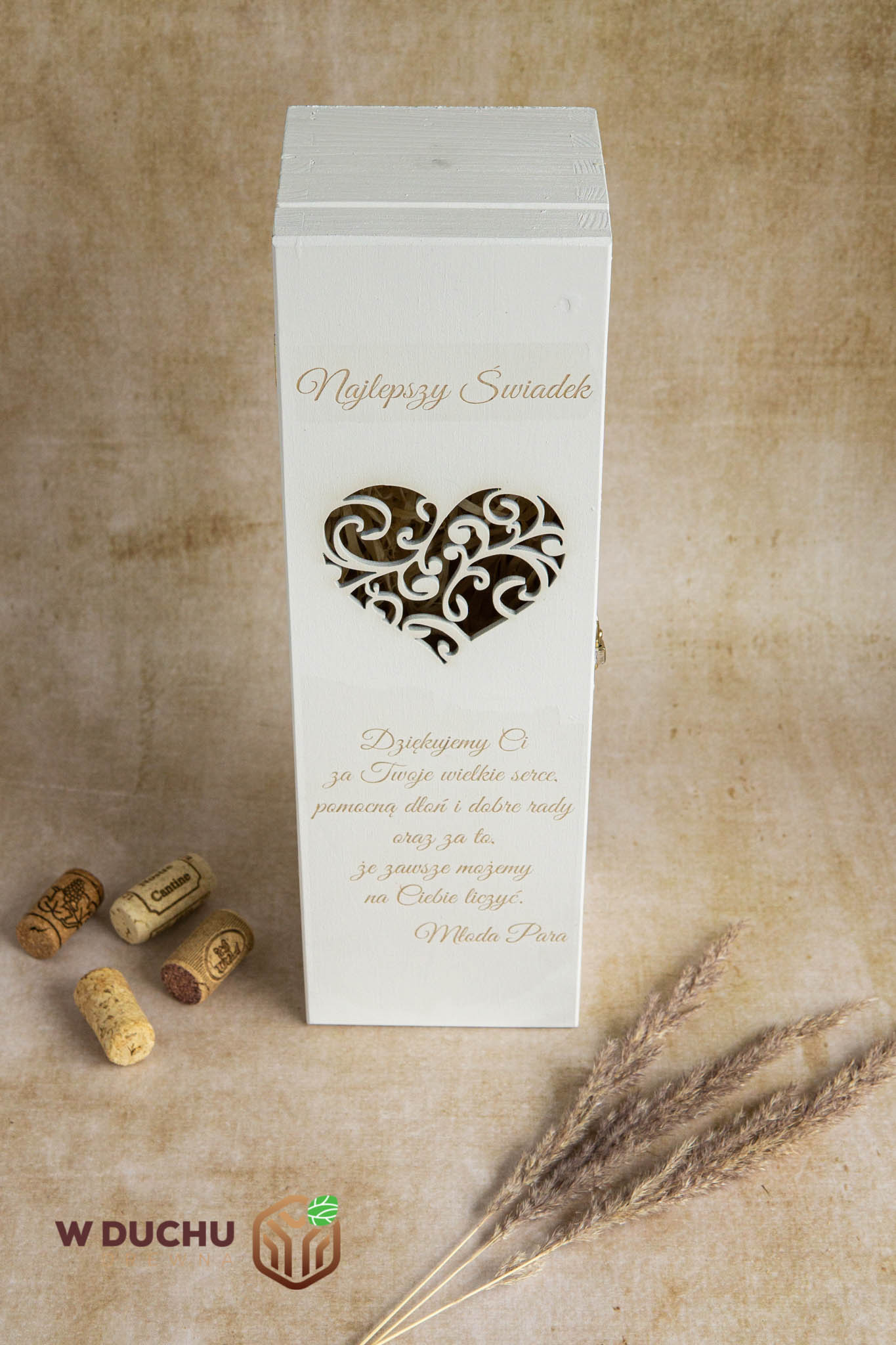 Grawer na pudełku dodaje dodatkowego uroku i personalizacji, co czyni z niego wspaniały prezent dla świadka na ślubie. To idealne opakowanie prezentowe, które sprawdzi się na każdym ślubie. Dzięki takiemu prezentowi świadek na pewno poczuje się doceniony i mile zaskoczony. Pudełko na alkohol dla świadka na ślub to nie tylko praktyczny i elegancki gadżet, ale przede wszystkim wyjątkowa pamiątka!