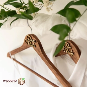Jeśli szukasz oryginalnych i pięknych dodatków do swojego ślubu, z pewnością spodoba Ci się ten zestaw dwóch drewnianych wieszaków ślubnych w stylu rustykalnym. Każdy z wieszaków ma unikatowy design i został wykonany z drewna, co nadaje im naturalny i elegancki wygląd.